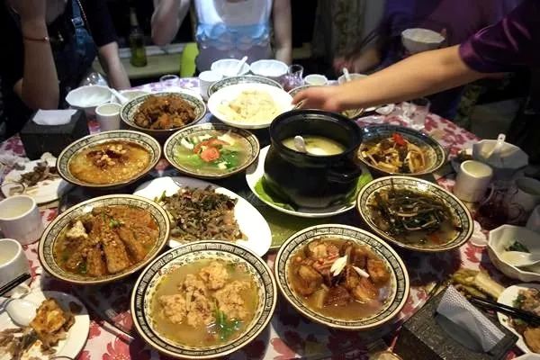 恩阳席:恩阳的席桌俗称“八仙桌”,顾名思义,4个面只允许坐8人,每面坐2人。一般来讲,按辈分、尊卑、长幼、主随、远近入座。堂屋上席在“天地君亲师”牌位正下方,吃坝坝席的时候则东方为上或背靠主人家堂屋大门的一方为上。就餐途中,一般席桌上吃光的主菜碗碟不得在未下席前撤走,特别注意的是,若是办丧酒则桌上再多的碗碟都不得重叠,是谓“犯重丧”,是大忌。若是女儿出嫁,媒人则坐在上席,在上菜时需对每个菜说句吉利话还要在掌盘内放零钱、茶食、糖果为妥。就餐结束如离开,则双手合十中间拿着筷子,作揖状说“慢慢吃”,然后把筷子平放到碗旁离席。