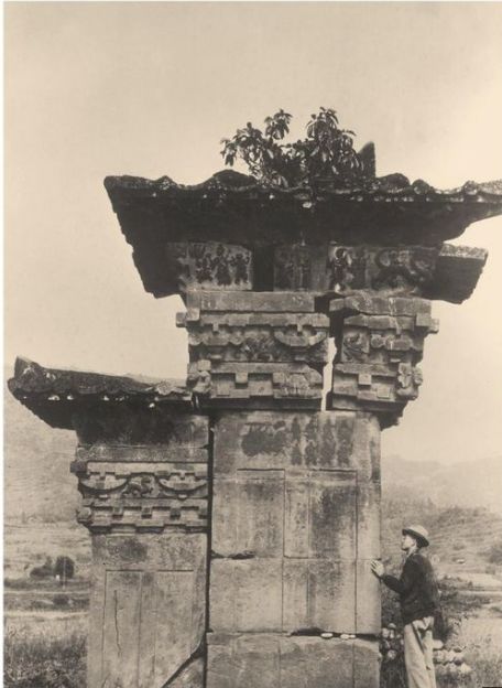1939年,梁思成在四川雅安高颐阙(图片来自网络)