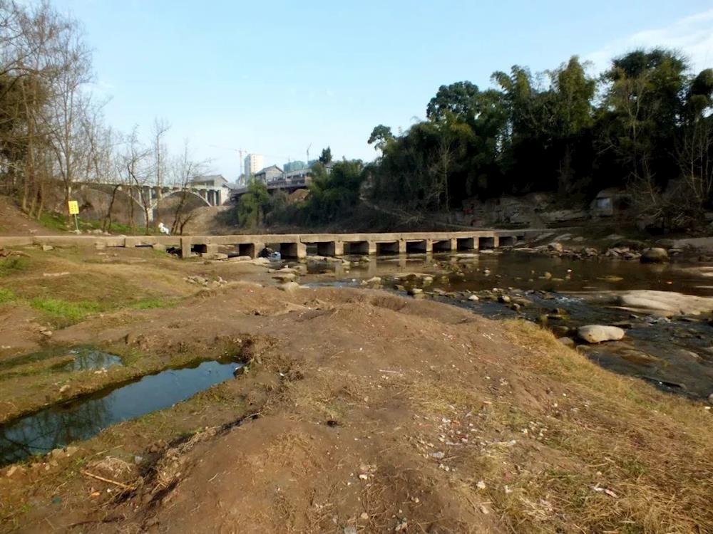 从恩阳古镇游客中心沿小路向下走至之字河畔,眼前便是一座青石铺就的小桥。这座建于清朝中期的起凤桥,桥面很窄,只容得下两三人。正值汛期,水位快贴近桥面。河两岸冷冷清清,偶有看到在河边洗衣服的老人。
