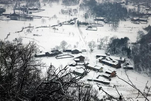 比起北方的雪,巴山雪是极其柔美而又顽皮的,六角形的雪花常常像翩翩彩蝶,潇潇洒洒从天而降,有时在空中划个弧线,而后慢条斯理地在枝头栖息。有时垂直下落,静静地躺在大地的怀抱,与地下的生命悄悄耳语。眼前这场雪下得太大了。随着天空一片乌云翻转,鹅毛大雪像爆米花喷薄而出,硕大的绒球疯狂地扑向田野,扑向森林,扑向山岗,扑向我童真的岁月。