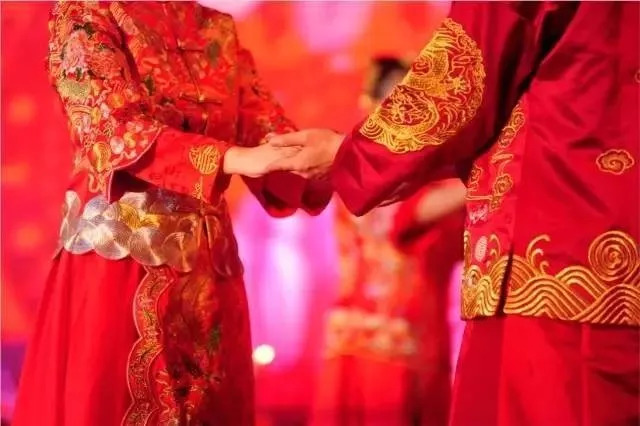 2017年8月27日晚,通江石牛广场举行中式集体婚礼。图为执手礼(图片来源:视觉通江)