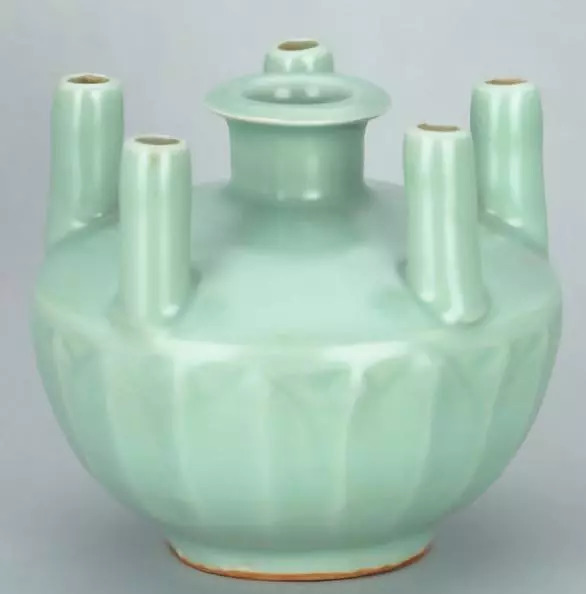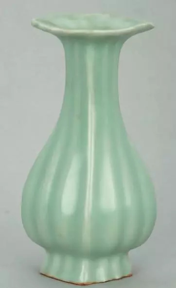 南宋龙泉窑青釉菱口瓜棱瓷瓶