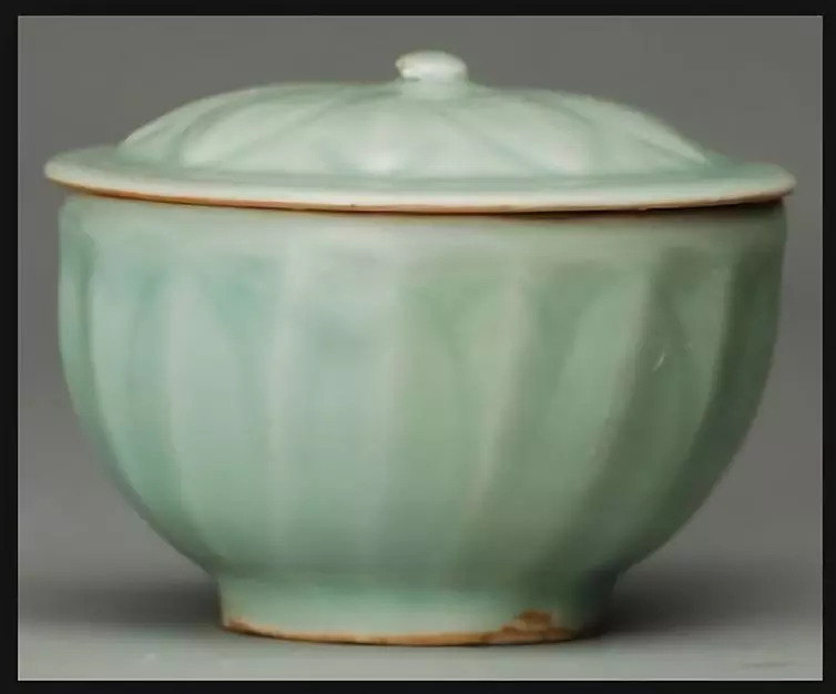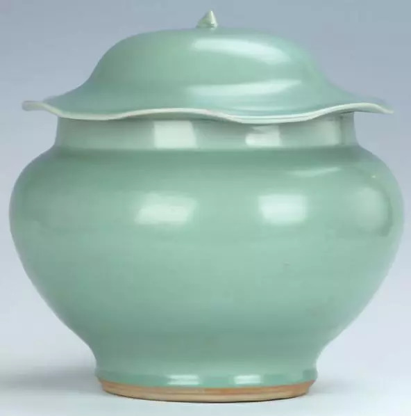 南宋龙泉窑青釉荷叶形盖瓷罐