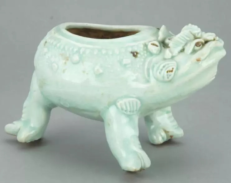 青白釉大口蟾蜍形三足瓷水盂