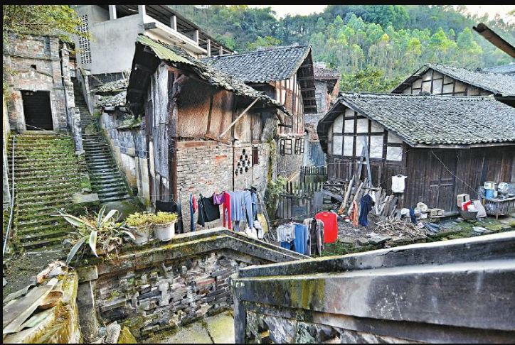 沿着“船形屋”拾级而上,一座大门紧闭的双层小洋楼引人注目,一株巨大的黄葛树缘墙生长,遮天蔽日。这座名为“紫藤花园”的小楼,风格特征明显不同于当地的四川民居。“这里大户人家的宅第多以青砖砌筑,西洋柱、马头墙、坡屋顶等元素形成了独特的中西合璧式样。这是由于‘川盐济楚’期间大盐商经常运盐至湖南、湖北一带,使不同地域的建筑文化得以交流融合。”王奕说。