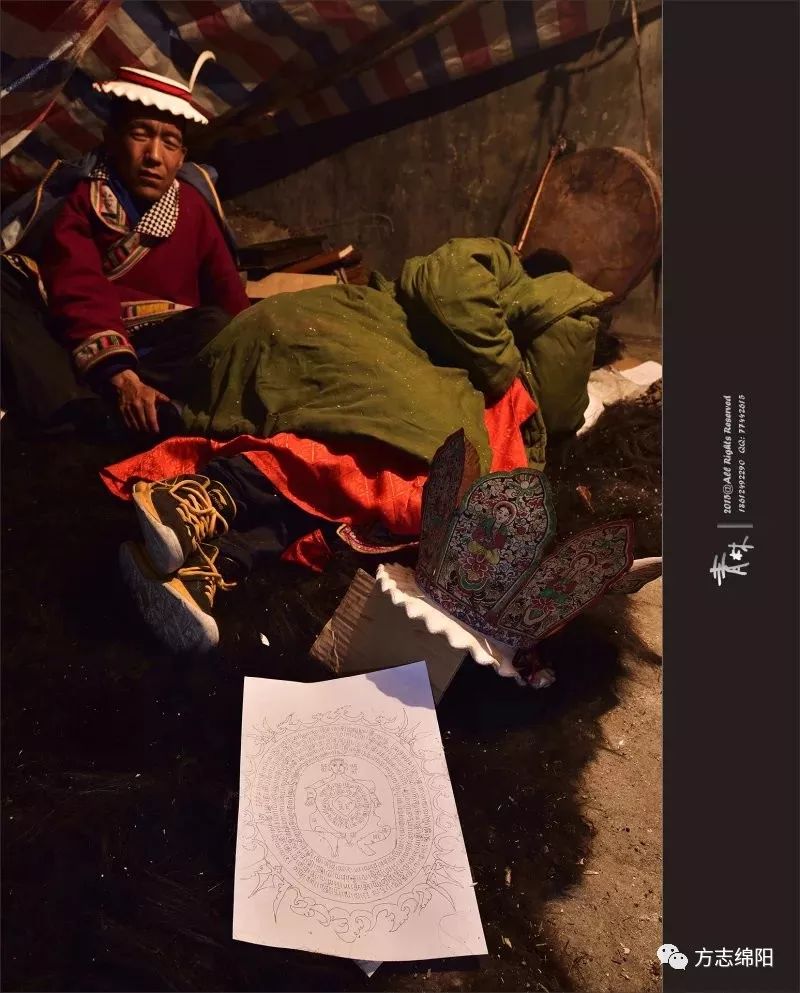 “白莫”念经的工作量极大,茨旦吉请来了另一位“白莫”扎如塔协助念经,同时,扎如塔还有打鼓的职责。