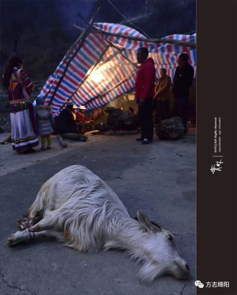 祭祀自然是要宰羊的。这只羊似乎早就知道了自己的命运,不动不叫,只是睁大着无辜的眼睛,让人不忍直视。