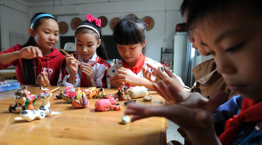 2013年10月8日,宜宾市翠屏区旧州小学的“面塑教室”内,孩子们动手捏制作品(图片来源:四川日报网)