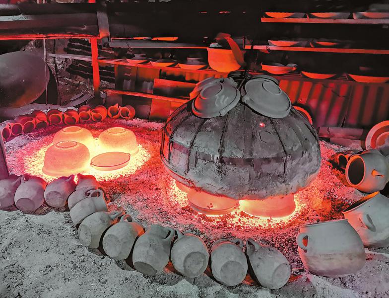 “我们的锅是有些地方不一样哦!”龚开贵解释,“我们的锅外面有一层亮晶晶的东西,那是一种釉泥,我们专门从吊洞里背出来的。上了这种天然釉泥,砂锅就不容易坏。”