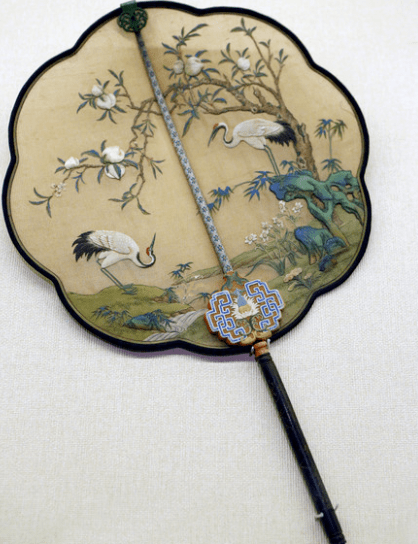 “赤日炎炎似火烧,公子王孙把扇摇。”公子王孙们会用竹扇或蒲葵扇么?我看不会,这些扇子虽说也能够招风,但太没有档次,这样怎能拉开与平民百姓间的距离呢。他们使用的扇子,可能是折扇,扇面上有名家字画,这就显得弥足珍贵了。要么就是诸葛亮使用的鹅毛扇,“羽扇纶巾,谈笑间,樯橹灰飞烟灭”,给人以无穷的智慧。而小姐太太们则用的是团扇,唐人杜牧曾在诗中吟道,“银烛秋光冷画屏,轻罗小扇扑流萤。”可见团扇除了驱暑纳凉外,还可以扑打萤火虫,这自然是落寞宫女的专利了。古代女子持扇,更有掩面遮羞的礼仪之需。譬如我们在戏曲中,经常看见女子饮酒时用水袖遮脸,就跟团扇掩面有异曲同工之处。