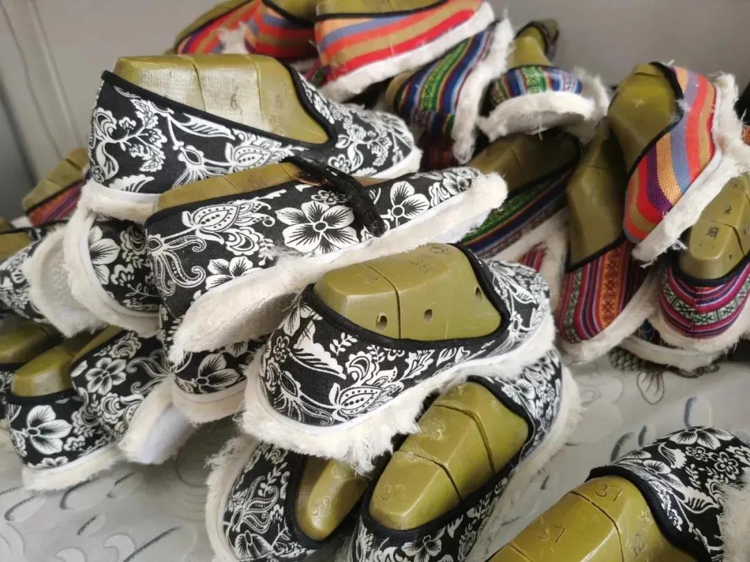 唐昌布鞋是我国千层底布鞋的一个分支流派,其传统制作技艺在2018年被列为四川省非物质文化遗产名录,距今已有700多年历史。第一轮《郫县志》载:“解放前,郫崇二县的布鞋生产纯系手工操作。当时的布鞋分单鞋、棉鞋、凉鞋、拖鞋、绣花鞋等品种。”