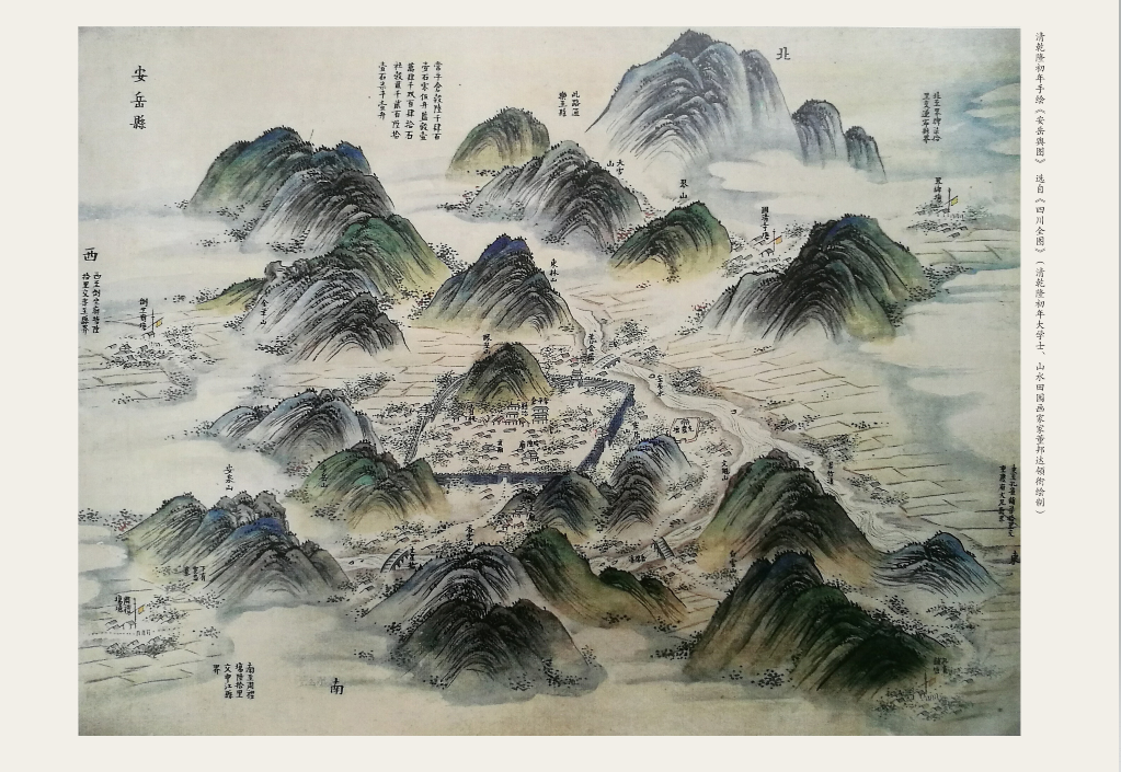 据清康熙本《安岳县志》之《沿革》记载,先秦时此地(安岳)为蜀国疆土,秦为巴、蜀二郡地,三国为蜀地。南朝萧梁(502—557)时设普慈郡,便采意于佛教“普渡慈航”中的“普慈”,既体现了梁武帝“以佛兴邦”的执政理念,又证明了这方福地亲近佛教所具有的佛缘。据唐《元和郡县志》载:“北周建德四年(575)置普州及安岳县,州、县同治一城。”这个城,即今四川安岳县城,迄今已有1443年历史。唐天宝(742—756)初,改为安岳郡,州、郡几经更改,但安岳县建制一直未变,安岳县城从未迁徙,足见安岳历史悠久、文明赓续。