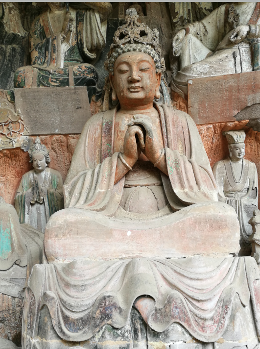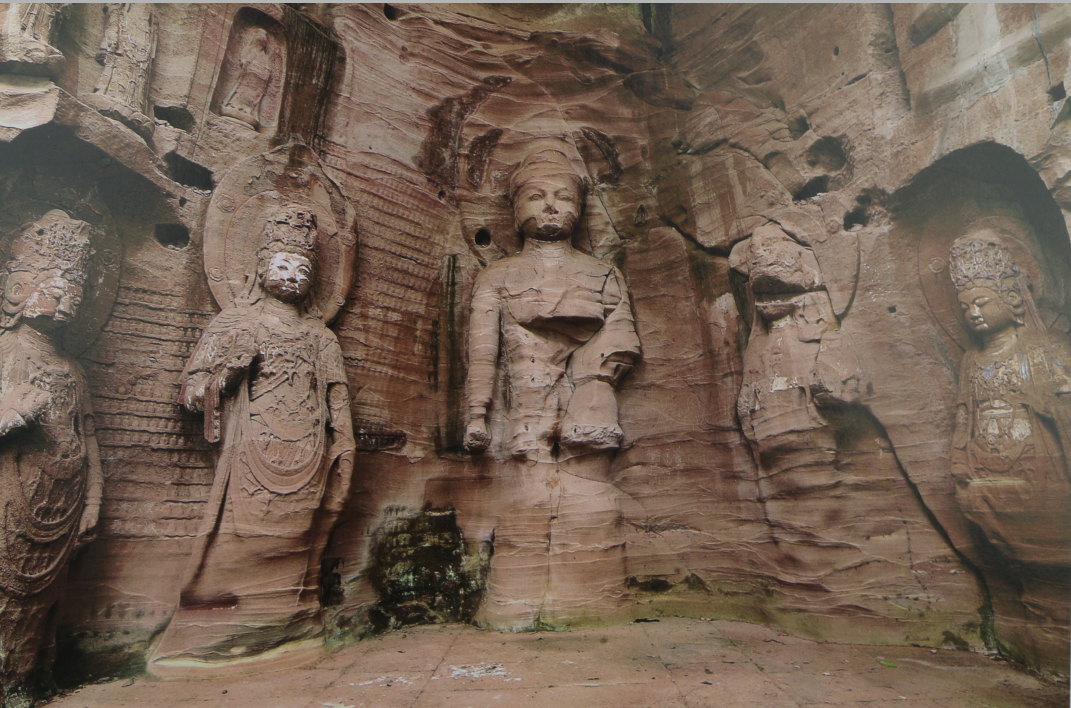 鉴于上述,如果喻中国佛教石刻艺术是一首词的话,那么安岳的这个“承上(龙门石窟)启下(大足石刻)”便有了这首词上下阕之间“过渡”的意义,注定了它在中国佛教史和佛教雕刻艺术上的特殊地位。