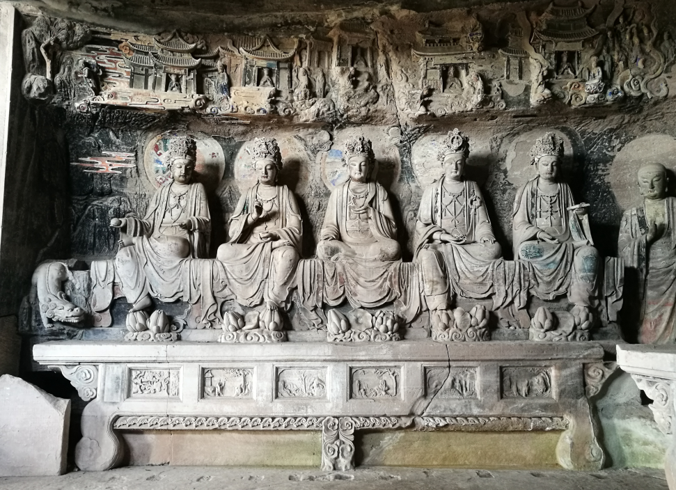 第三方面是内容多元。除佛教题材外,一是儒、释、道三教共奉一堂造像典型,造像逾千尊;二是道教造像占有一定比例,仅盛唐时所凿刻的玄妙观道教造像就达1293尊(包括少量佛教造像);三是地域性和世俗题材表现充分;四是碑刻题记多。