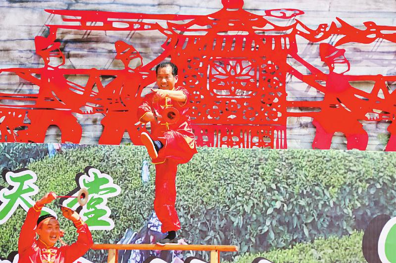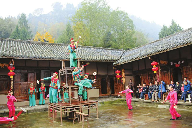 吴华德展示高台翻山铰子。本文图片由平昌县委宣传部提供