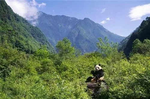 2018年5月31日,一只大熊猫来到汶川县绵虒镇金波村的田地里(图片来源:新华网)