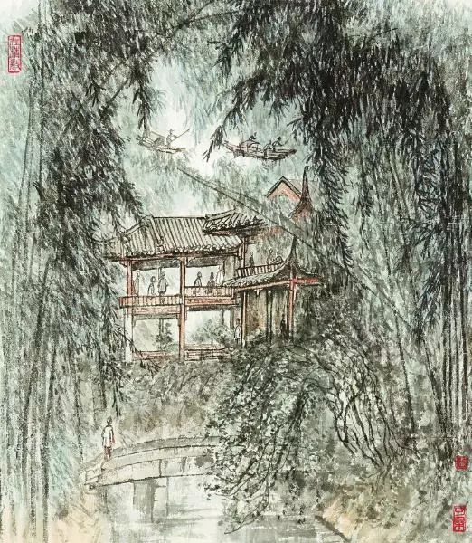 成都望江楼,李可染作,纸本设色,50.5×43.5cm (北京保利国际拍卖有限公司供图)