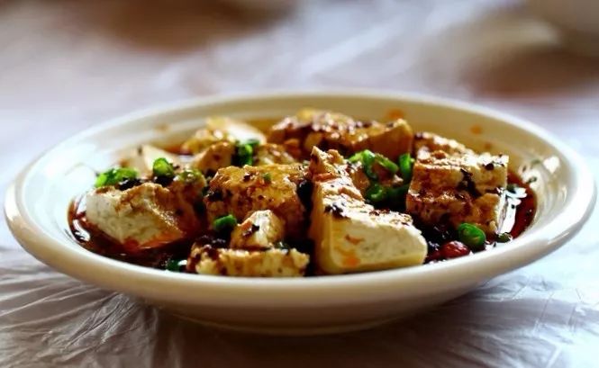 剑门豆腐以剑门山区砾岩油沙石土出产的黄豆为原料,使用来自剑门七十一峰的剑泉水,经浸豆、磨浆、滤渣、煮浆、点浆、脱水等工序制成。剑门豆腐颜色雪白,细嫩鲜美,口感不涩,且有淡淡清香,并韧性极强(图片来自网络)