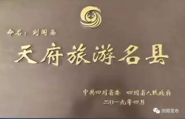 2019年4月29日,四川省文化和旅游发展大会在成都召开,会上,广元市剑阁县被四川省委、四川省人民政府命名为首批天府旅游名县(图片来源:剑阁发布)