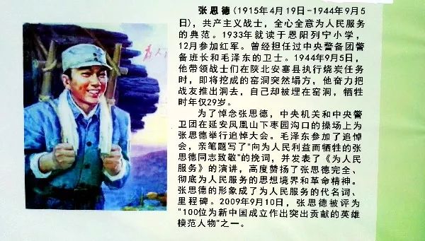 巴中市恩阳中学校友宣传栏中关于张思德的介绍(蓬州闲士 摄)