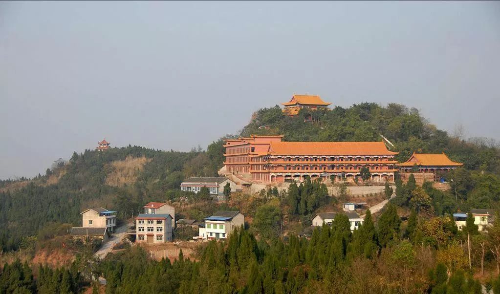 来到蓬安临近高坪的凌云山,时间已是中午。山不高,树木也不多,看得出是近些年退耕还林后长起来的。山上有一座三清殿,殿门前有四块形似乌龟的大石头,殿前的阔地上镶有乌龟和蛇组成的玄武图案,弥漫出浓郁的道教气氛。三清殿的背后有块特大的乌龟石,石上有个汤圆大小的小洞。导游介绍说,这龟石特灵,凡是想求子的,只要是背对着把石子甩进去了,回去后愿望自然就会实现。一行男女就都嘻哈着捡起路上的石子朝里甩,自然是甩进去的少。