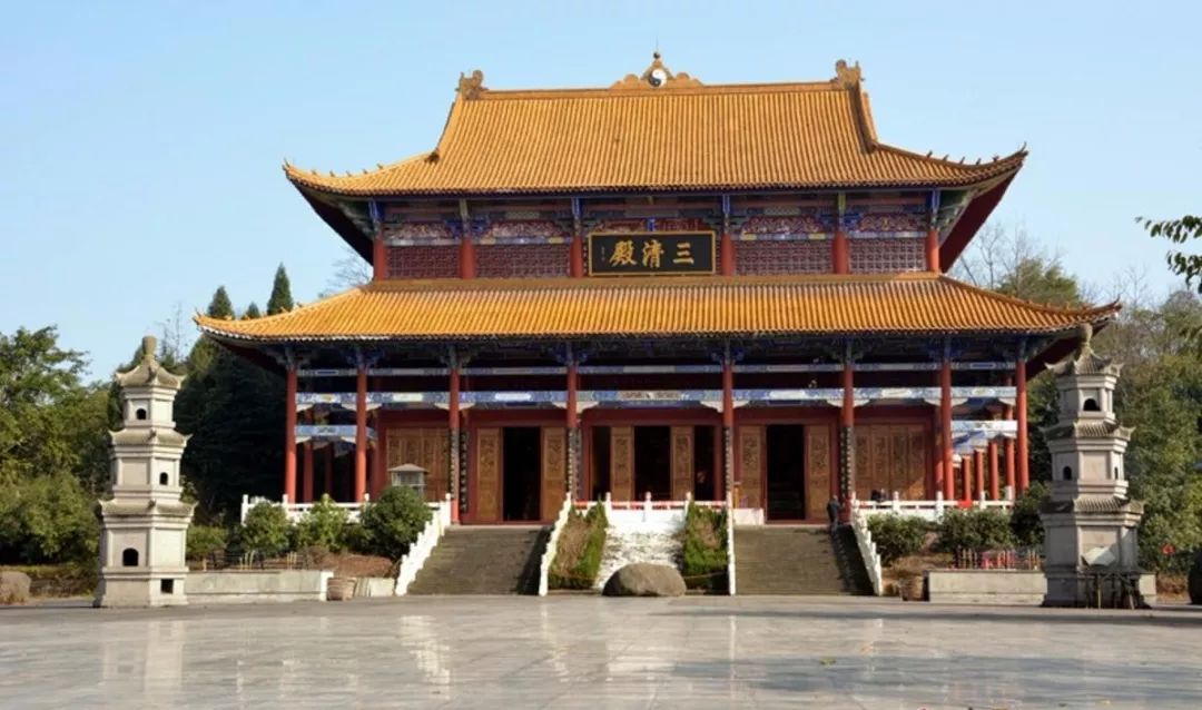 登上小山包,导游说三清殿的位置乃左青龙右白虎前朱雀后玄武,是难得的宝地。更难得的是,站在殿后的小山包上,可以看见对面山上的两尊睡佛。我们顺着道士手指的方向看去,果然就看见了对面逶迤的山形极像仰卧着的佛,并且稍微移动下视角,另一端的山形也像一尊仰卧的佛,与前边的睡佛抵脚而眠。