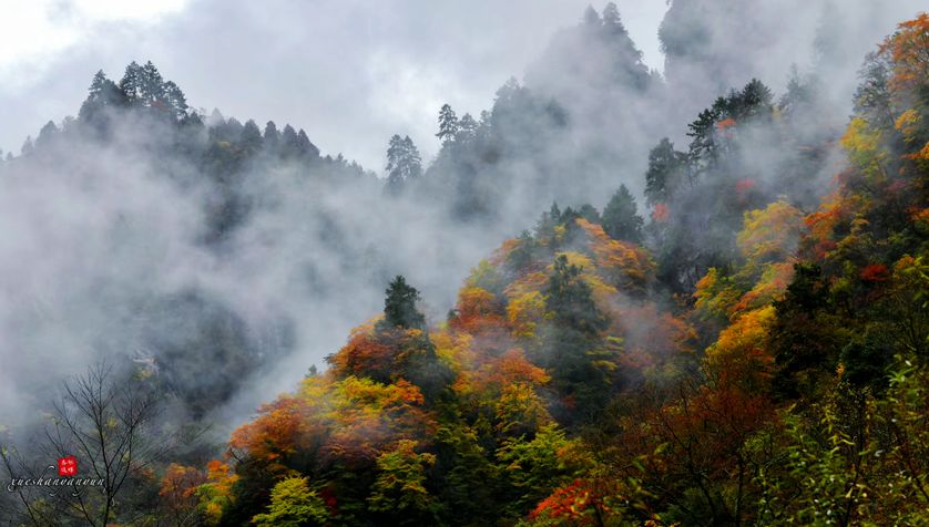 深秋的老河沟略带一丝寒意,空气里似乎都弥漫着“氧气的味道”!树叶由黄变红,你的心,会在这样的景色中起舞,与老河沟的相遇,是如此的美妙!