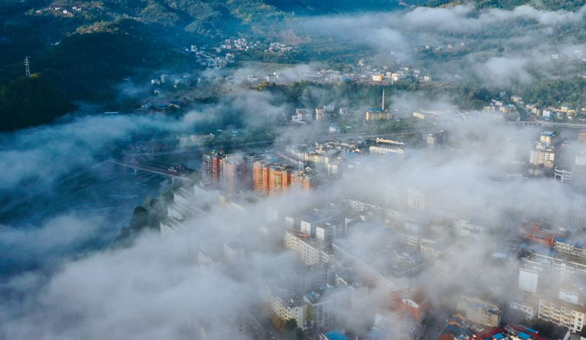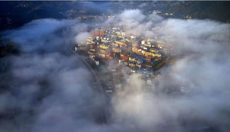 云雾中若隐若现的小城(刘勇 摄)