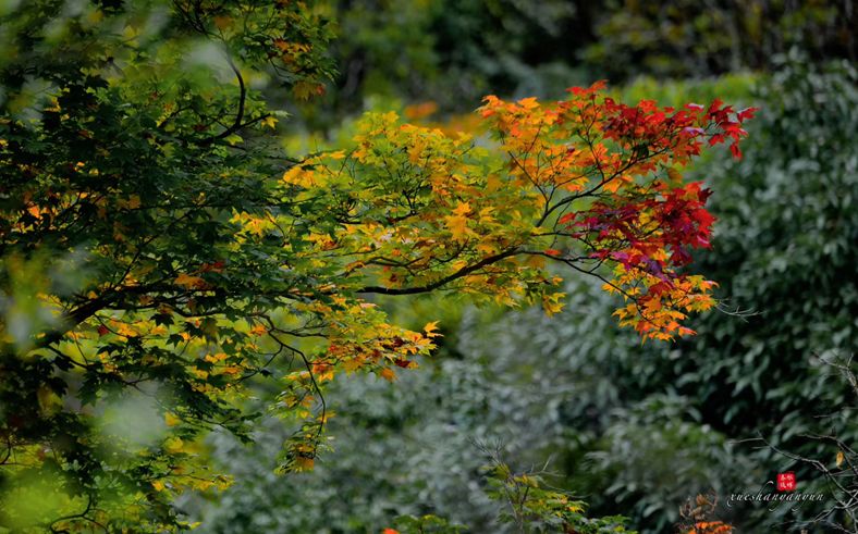 当你漫步山间,跨过清澈见底的小溪,就会发现这坠入红尘的红叶,静静地在这儿等你,而这样的颜色是那么地鲜亮自然。