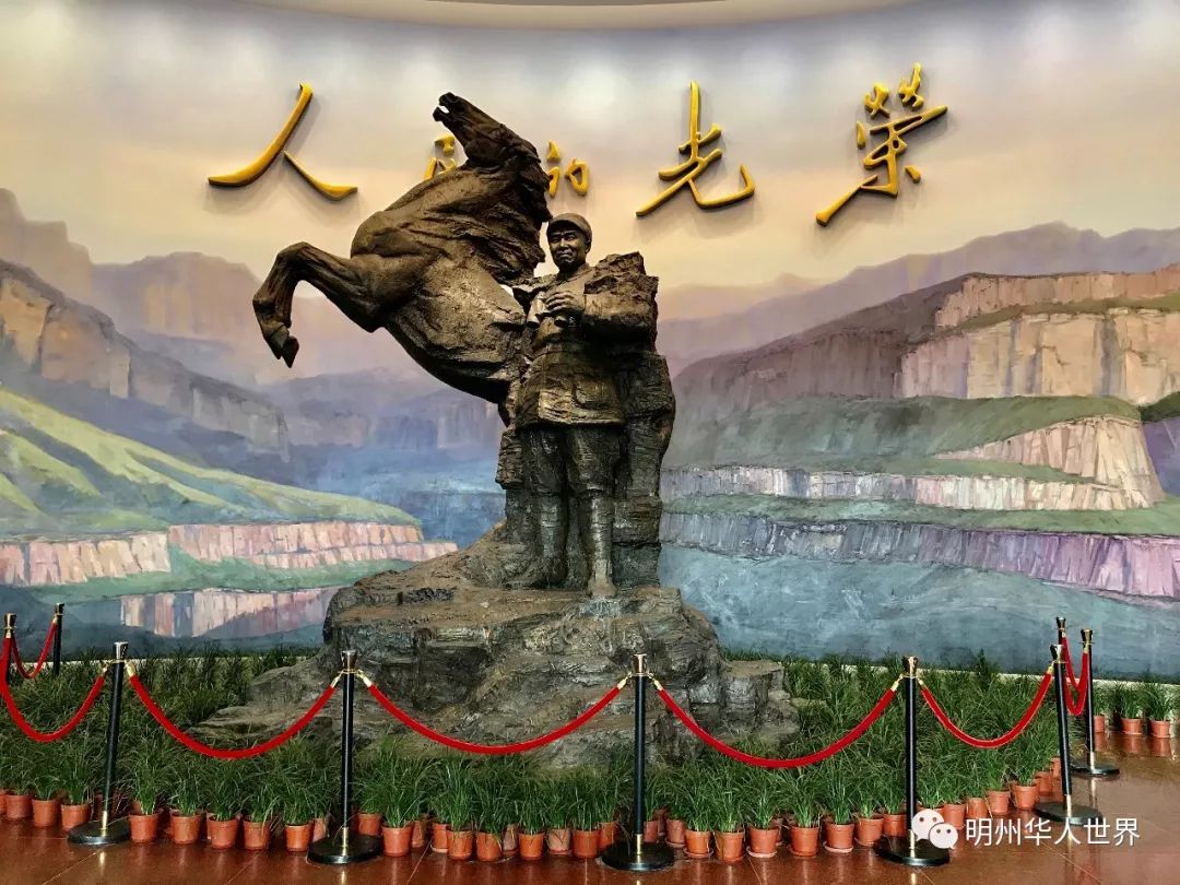 纪念馆前广场上竖立着一座高大的朱德汉白玉雕像。雕像里的朱德神情庄严、目光坚毅,右手挥向前方,令人动容。我们一行满怀敬意在雕像前面留下了珍贵而难忘的合影。