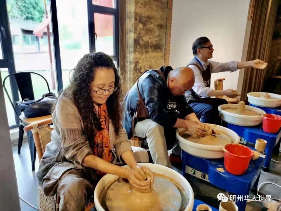 同仁金浩静等人在饶有兴致地体验陶瓷拉坯制作