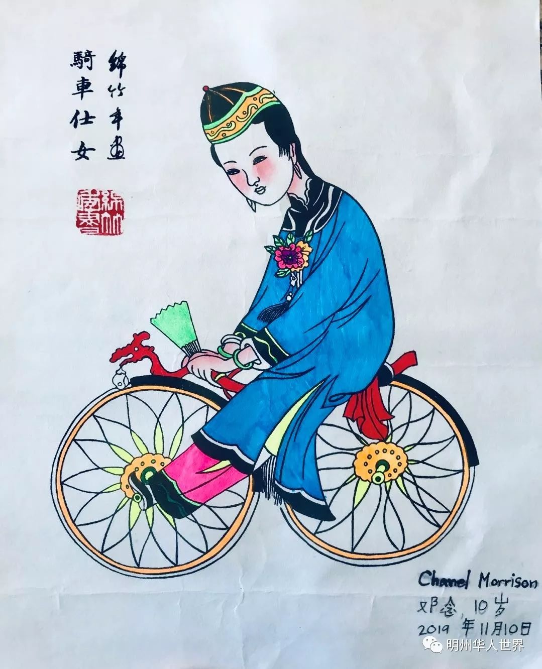 在绵竹年画村里,我们亲手体验年画上色的乐趣,个个聚精会神地沾色、细描,精心绘制自己的年画作品。“胸有成竹”“骑车仕女” “明清仕女”,我们像孩子们一样骄傲地展示着张张带着各自喜好和情感色彩的年画,并都将其作为一份珍贵的礼物带走作为纪念收藏。我特意多要了一张著名的“骑车仕女”黑白年画作品带给我的小女儿,希望她在美国感受中国绵竹年画的魅力芬芳,分享妈妈在绵竹年画村的这份喜悦。殷切期待小女儿今后回国参加“中国寻根之旅”夏令营等相关文化活动。