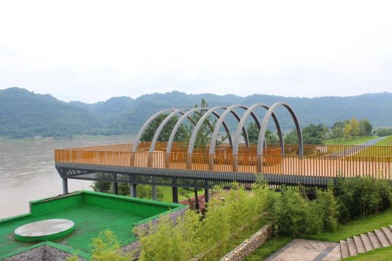 长江之歌驿站,即湾度生活馆。该建筑吸取江水回弯元素,外形采用波浪形,如歌如斯,寓意南溪发展如江水奔流勇进。这里江面开阔,天高云淡,一眼望去,对面合璧窝青山隐隐、绿树葱茏,脚下江水迢迢、碧波荡漾,江景赏心悦目,令人心旷神怡,是观赏长江美景的最佳之地,也是南溪·长江第一湾旅游景区的重要景点。
