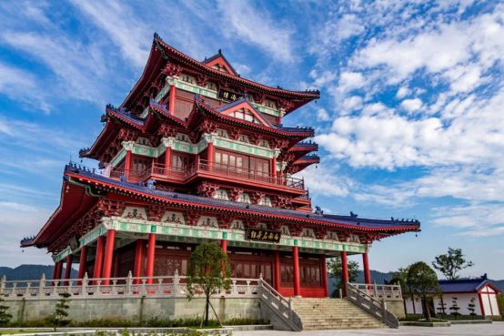 相传,明代时期,游方高僧隆月大师漫游到南溪的时候,被南溪的山水风光所吸引,便在江对岸的琴山上依岩石打造了漂海楼。站在漂海楼上,俯首可看见江水浩荡,琴山浮动,仰头可看见暮云排排横列天空,晓雾笼罩如海市蜃楼,这便是南溪古八景中的“海楼烟雨”。因为南溪正处于北纬28.5度上,所以漂海楼的高度便设计为高28.5米。