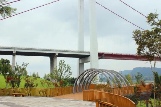 建设方坚持绿色生态现代化设计理念,以人为本建设退台式的台地景观,为市民提供了驻足欣赏长江美景的休憩平台。右手边的翠竹带,根据2019年2月13日省委彭清华书记实地调研要求,对长江北岸原生竹进行梳理,栽植常绿开花地被,形成了显山露水的沿江竹景观,全长约两公里。