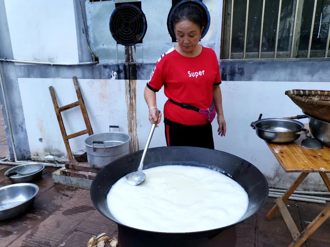 黄荆老林原林村金鱼溪旅游小镇村民在制作豆腐(蓬州闲士 摄)