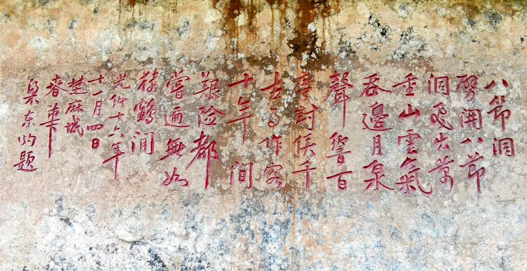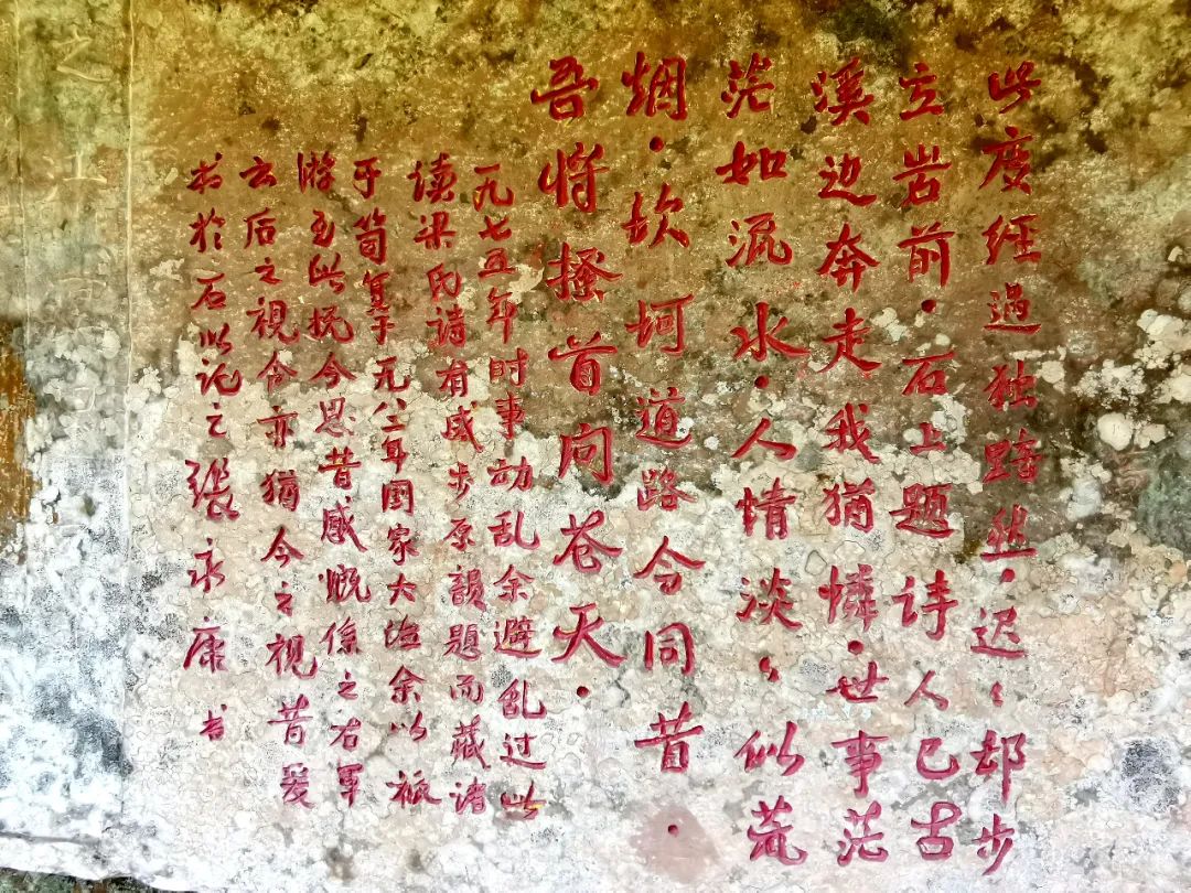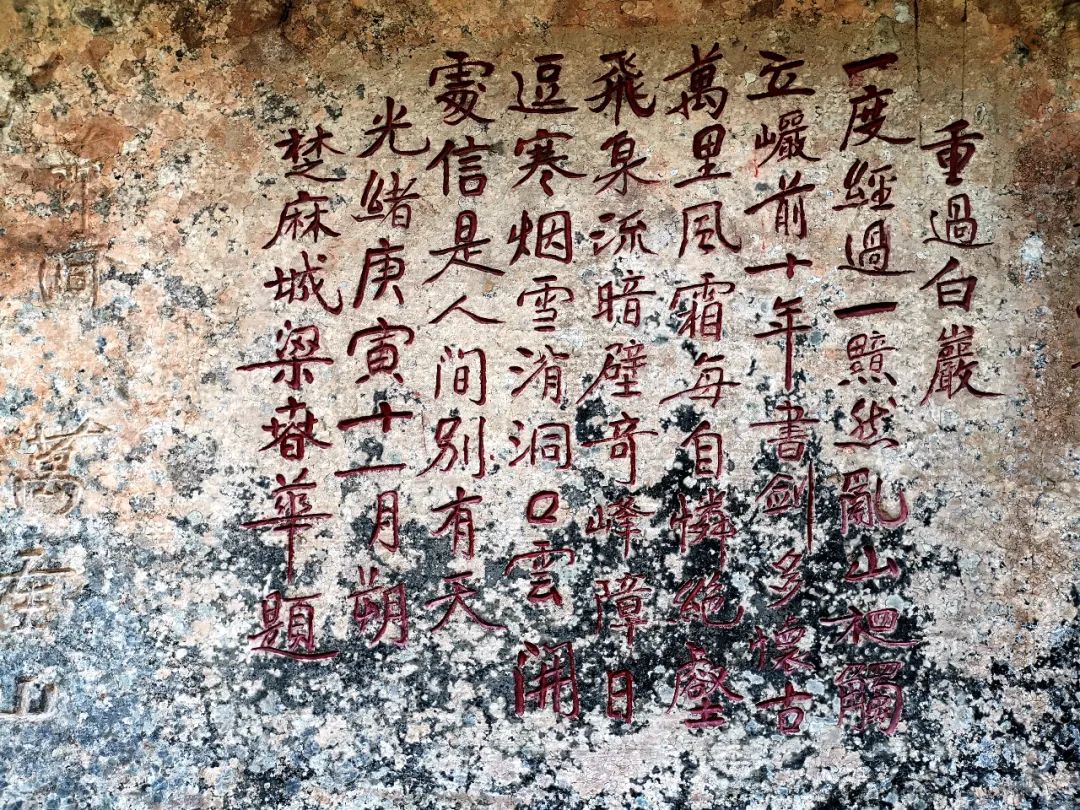 位于白云岩瀑布附近,白色的岩壁上雕刻保留了历代诗人游览留下的诗词歌赋,是珍贵的文物保护地。清代诗人梁春华在此留下著名诗句:“绝壑飞泉流暗壁,奇峰嶂日逗寒烟。雪消洞口云开处,信是人间别有天。”