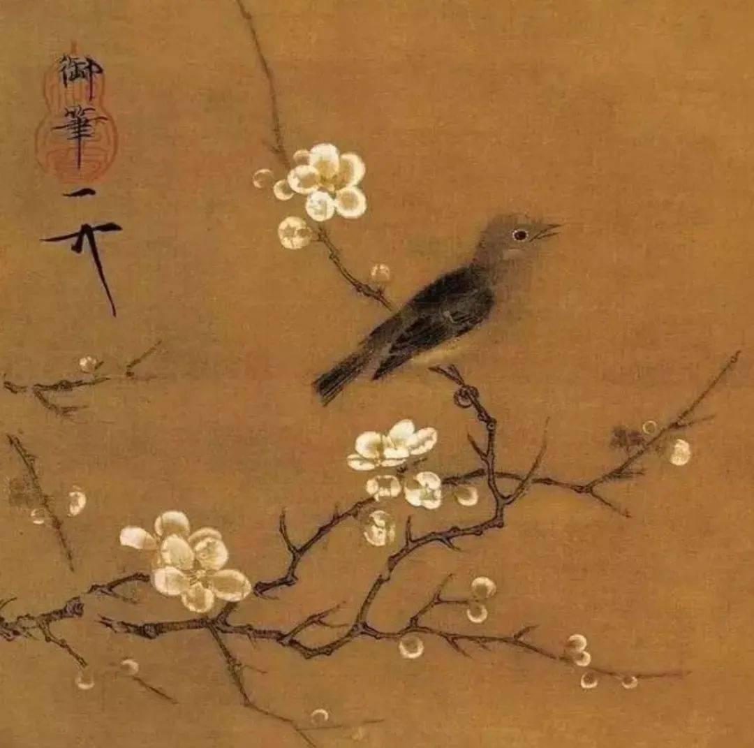 忽然想起曾在网上见过的宋徽宗赵佶的绢本画:形如盘虬的梅枝从画面左侧伸入,枝上是几朵稀疏的梅花,孤零清浅。在一枝极力向上的梅枝上,立着一只小鸟儿,嘴喙微启,正在孤独地鸣唱。或许,它正在召唤着自己的情侣,从那疏朗的天空飞入画面,与它一起共享这深宫里的春天。这幅作品藏于北京故宫博物院,名为《梅花绣眼图》,有专家认为枝上的鸟儿便是灰腹绣眼鸟。我不通书画,对古画更是知之甚少,就自己有限的浏览,似乎极少见到绣眼鸟入画者,所以只一眼,便永远记住了这幅画。