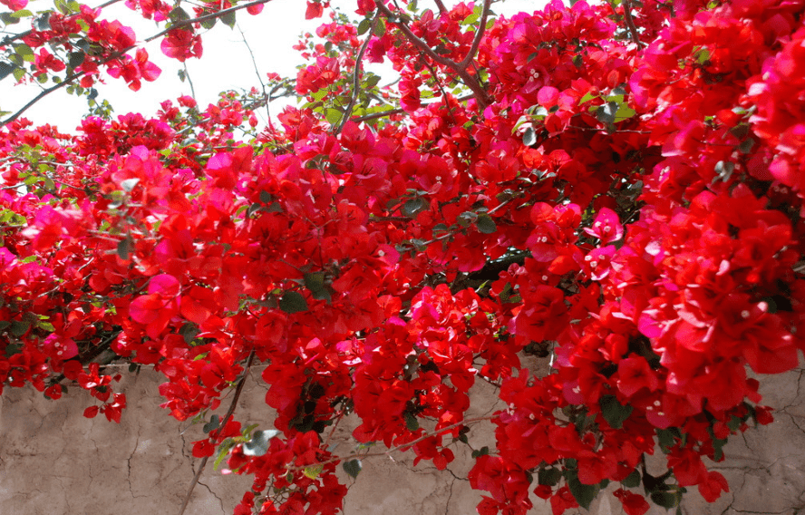 在我的家乡,三角梅只是承担了观赏植物的角色,而在米易,在广大的南方中国,三角梅更多地承担着城市绿化植物的身份,是不同的地域和物候,赋予了它不同的性格和气质。三角梅是明显的被子植物,被子植物作为开花植物的祖先,三角梅依然保留着它们先祖初始的样子——三角梅,又名三叶梅,它们的花瓣——其实是花苞,真正的花朵不起眼地掩藏在花苞内——依然有着叶子的形状,只是在颜色上与自己的叶子区别开来,占领着叶子中最顶端抑或最显著的位置。如此,这个在南方极为普通的花卉,却可以把历史上溯到动物和植物分家的寒武纪时代。当动物和植物各自选择了四处游走和岿然不动,放下了一切的植物却唯独放不下爱情,于是,它们以公开贿赂的方式,吸引那些会飞的传粉动物为自己做媒婆,把它们的浓情蜜意带给心仪的情人。它们拿给传粉者的,有艳丽的色彩,有扑鼻的芬芳,更有让传粉者一经沾染从此便不能自拔的花蜜。为了达到这样的目的,它们把希冀交给漫长的进化,在日积月累的时间的尘埃里,它们一代代地死去又一代代地复活,渐渐地,它们的几片叶子慢慢有了花的形状。可能谁也没有注意到,它的花瓣——我依然固执地认为它不是花苞,那不同层次不同深浅的红,虽然在颜色上背离了叶子,但它依然保留着叶子的样子,执着地存储着自己先祖的形象,每一抹红里都满含着对远古的追思和怀念。
