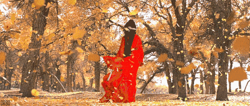 秋日的原始森林,如同张艺谋电影《英雄》的片段。