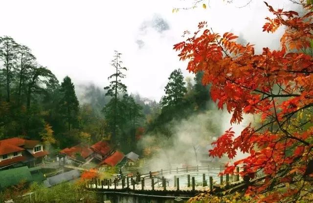 海螺沟温泉将斑斓的秋季带入永恒的季节,秋天,沐浴在海螺沟温泉里,身体宛如天上漂浮的暖云,四周枫叶飘落,温泉里的心境或怡然自得,或超脱尘世、或宁静澄明、或天人合一。