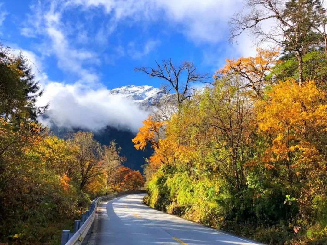进入甘孜州海螺沟景区后,斑斓多姿的彩林像是片片五色的云朵在路边、山间萦绕。