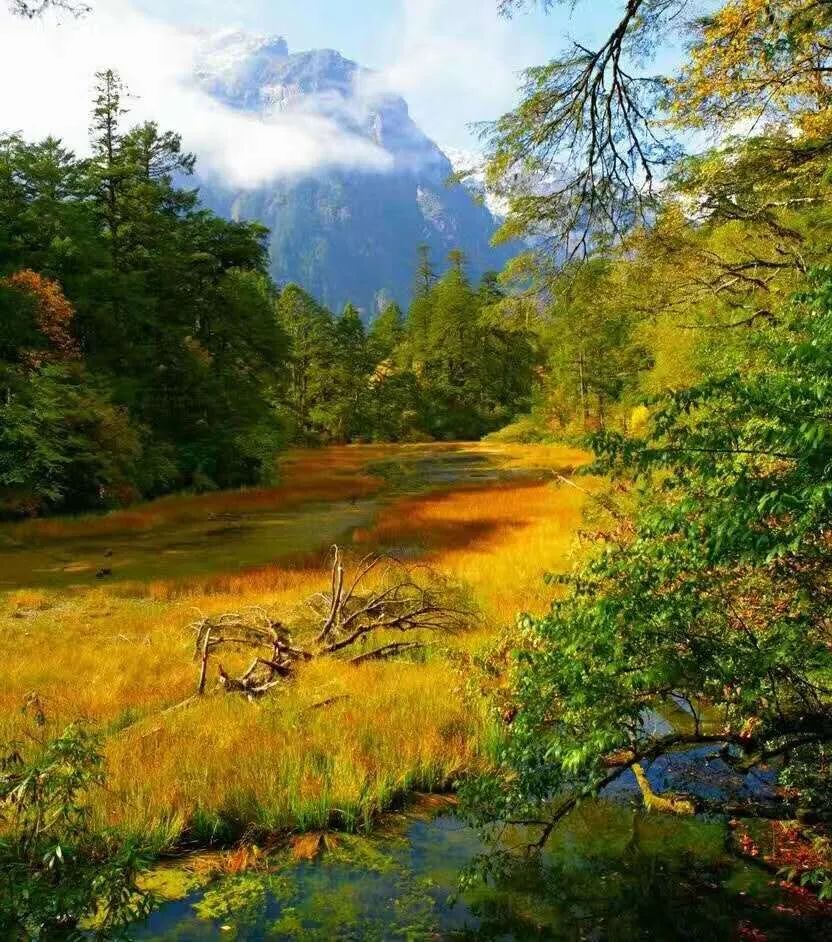 而秋天的贡嘎山,处处流淌着温暖的颜色,“金阳”的秋色,如北极星的光晕在峡谷间肆意流动,追逐嬉戏,相映成趣。一改往日的冷静严肃。