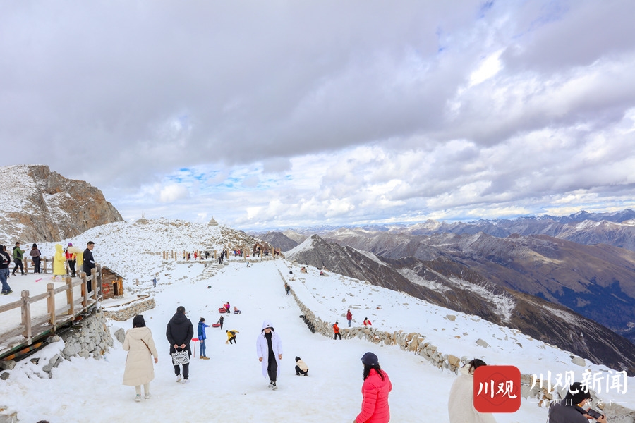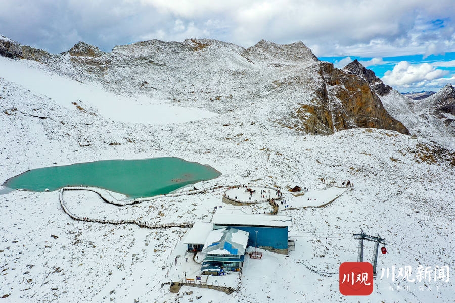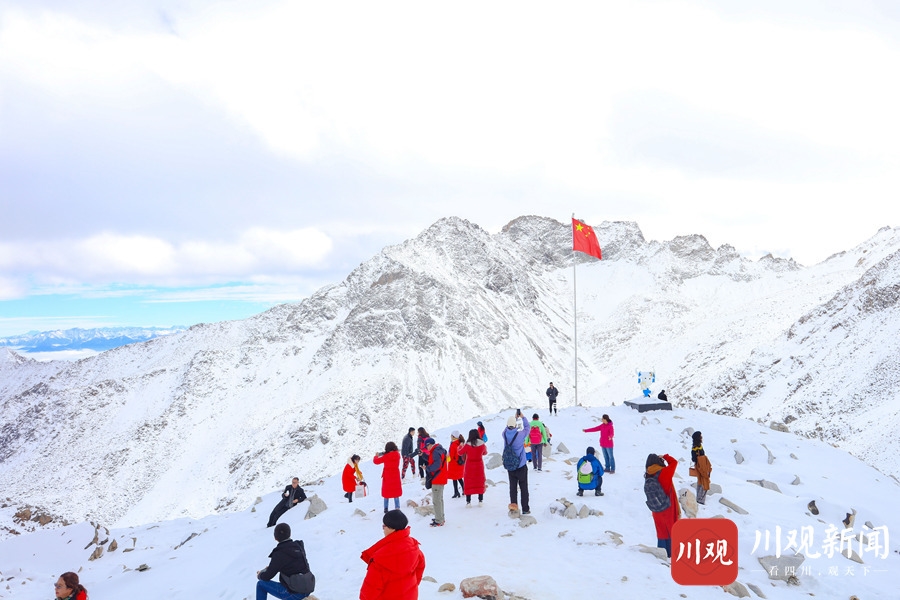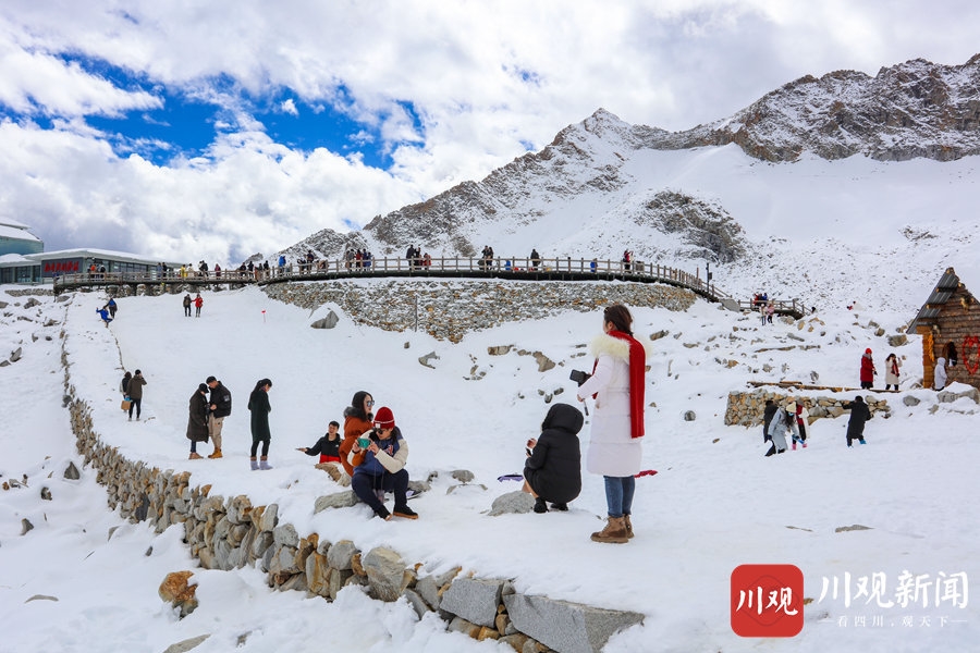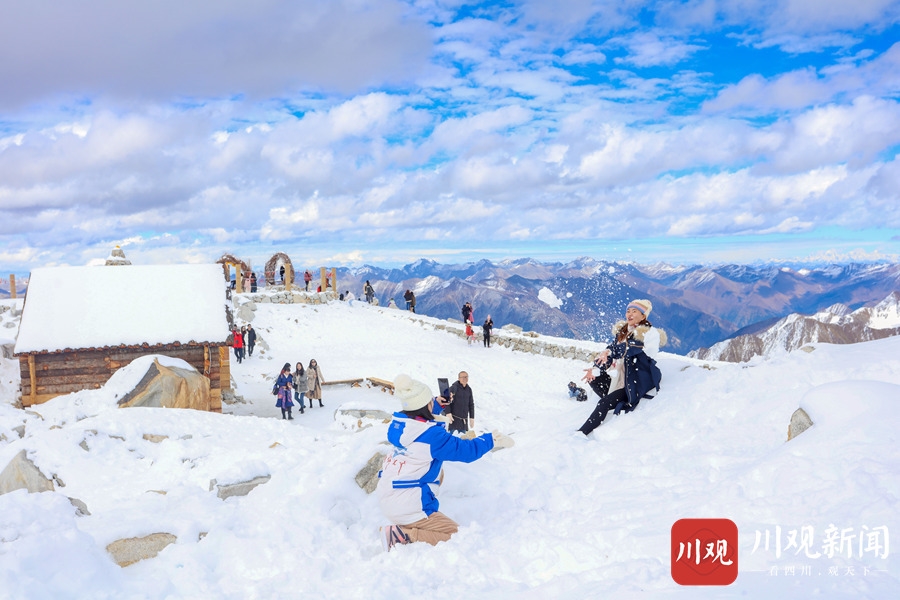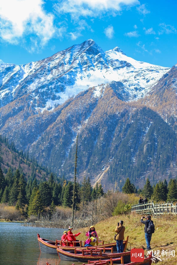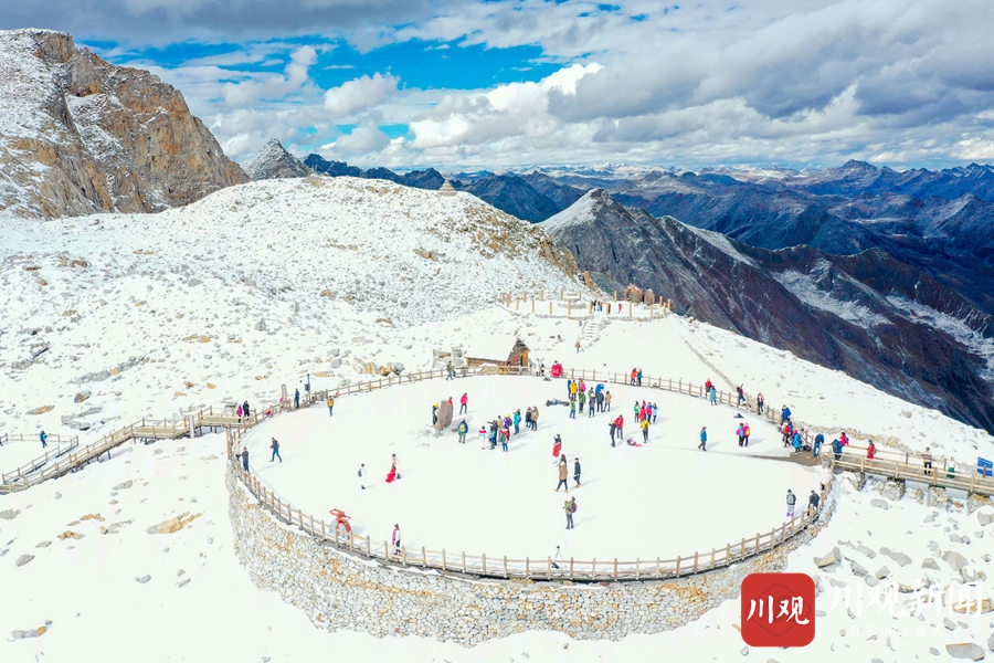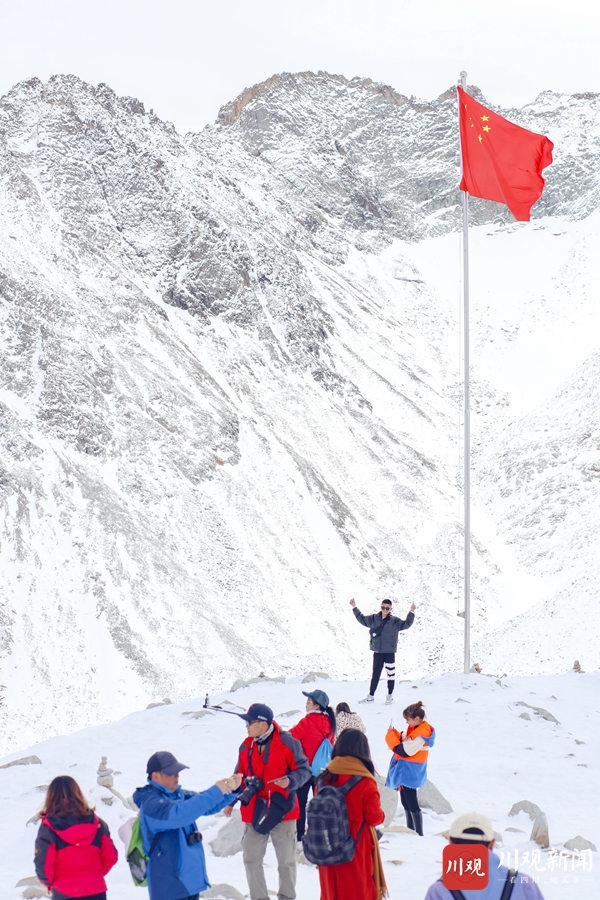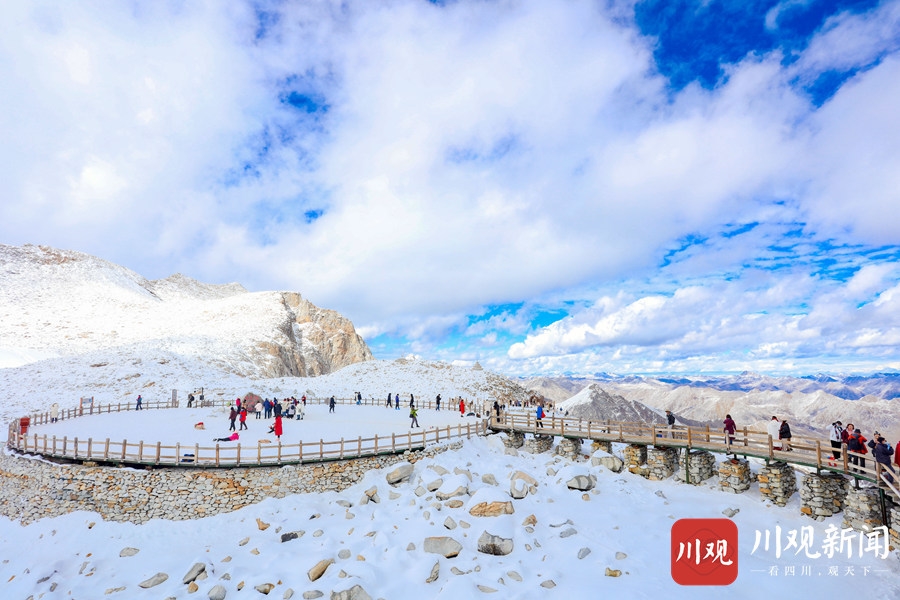 2020年10月24日,阿坝州黑水县达古冰川景区内,蓝天之下的雪山,纯净得彷似在和漂浮在天空之中的白云比美。阳光照耀下,白雪覆盖的万物更显晶莹剔透,使得这里宛如仙境一般,吸引了众多游客前往游玩。