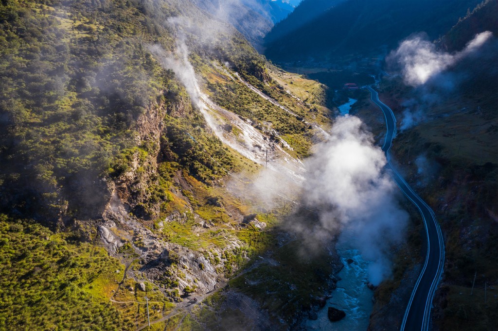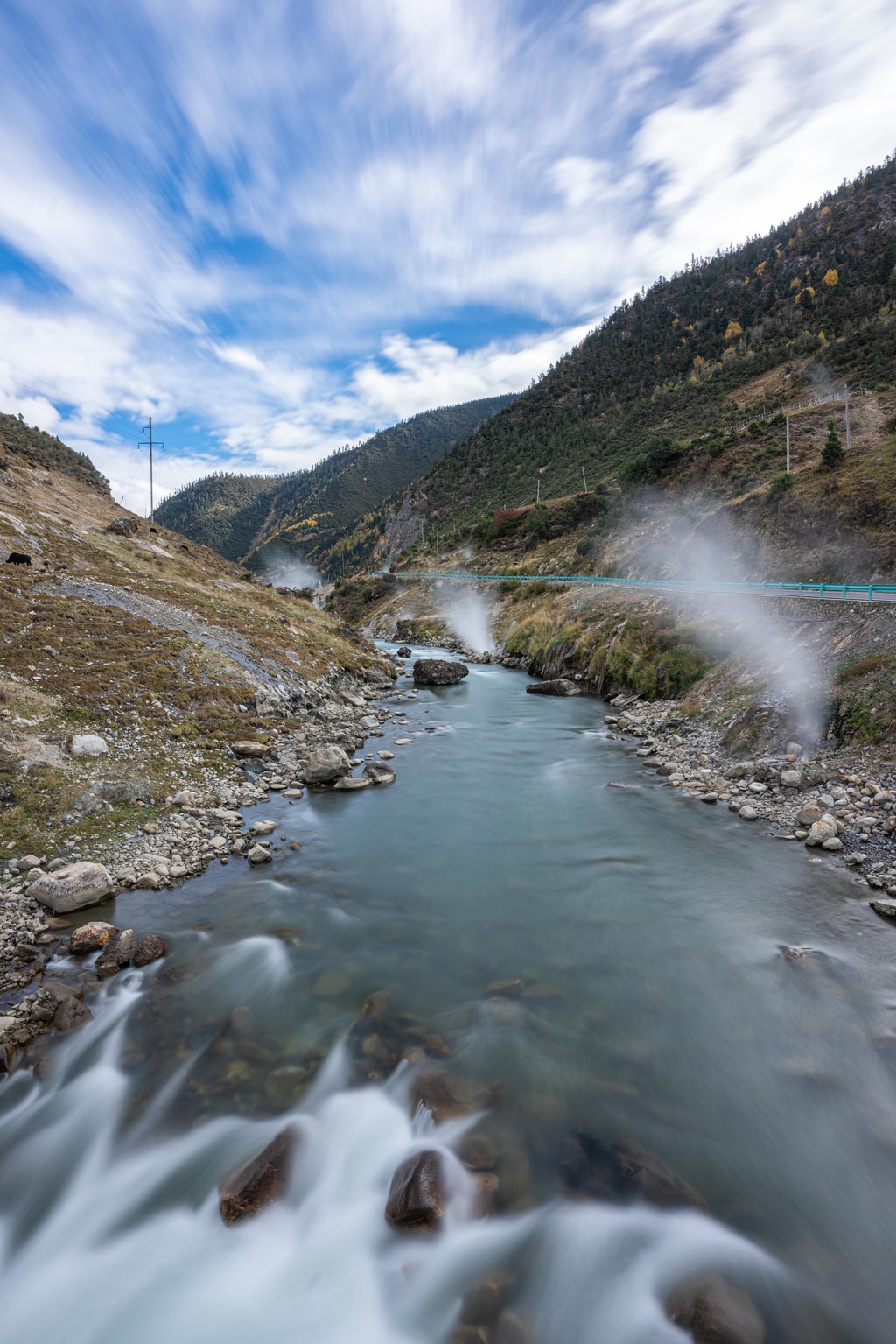措普沟热坑温泉群是四川省境内最大的地热温泉群,或是公路旁、或是山间、或是森林、亦或是湍急的河流边,都能看到大大小小的温泉,如果是清晨或者傍晚来到这里,还能看到山谷里到处都升腾着一股股热气,运气好时,或许能遇到清晨放牧的牧民,从云雾中走出,彷佛是一个从仙境走出来的仙翁。