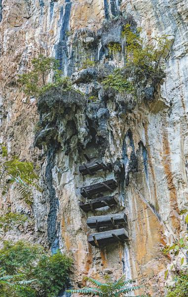 绝壁上的天然悬棺博物馆
