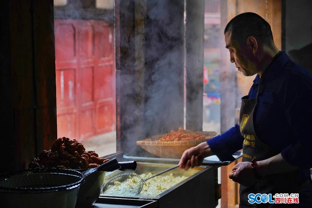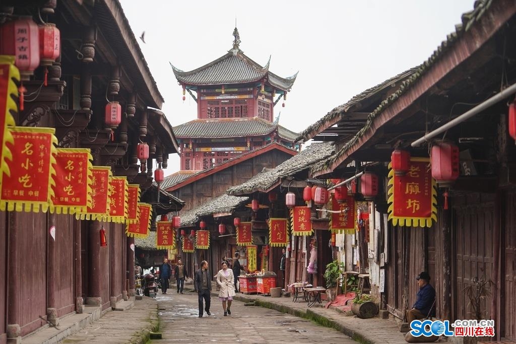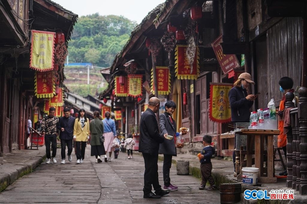 4月14日,蓬安细雨,水天一色、新绿尽染的嘉陵江畔写意渐浓,古镇内,招牌式晾晒鱼干的张氏干鱼铺、老字号的河舒豆腐、麻花西施店前都总有闻香而来的老主顾。