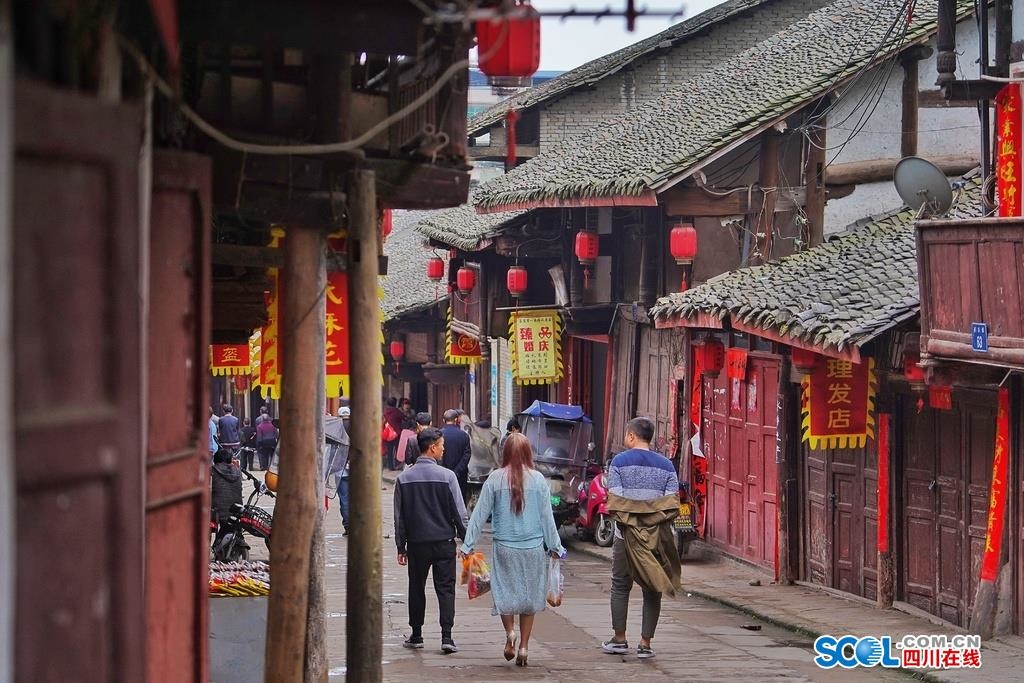 顺红军街而下,古黄桷树旁,石梯边的栓马石,鳞次栉比的民居沿石阶,可以一直延伸到嘉陵江边的古渡码头,财神楼、万寿宫、濂溪祠、茶楼、客栈等都无不显示着曾经的辉煌。
