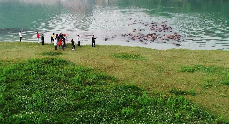 水上起“芭蕾”,“百牛渡江”成奇观