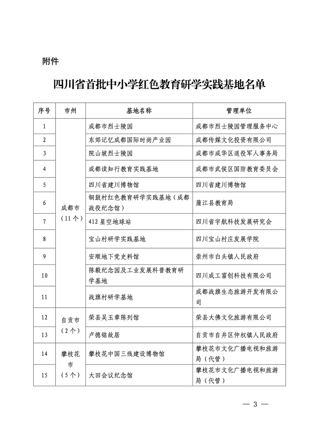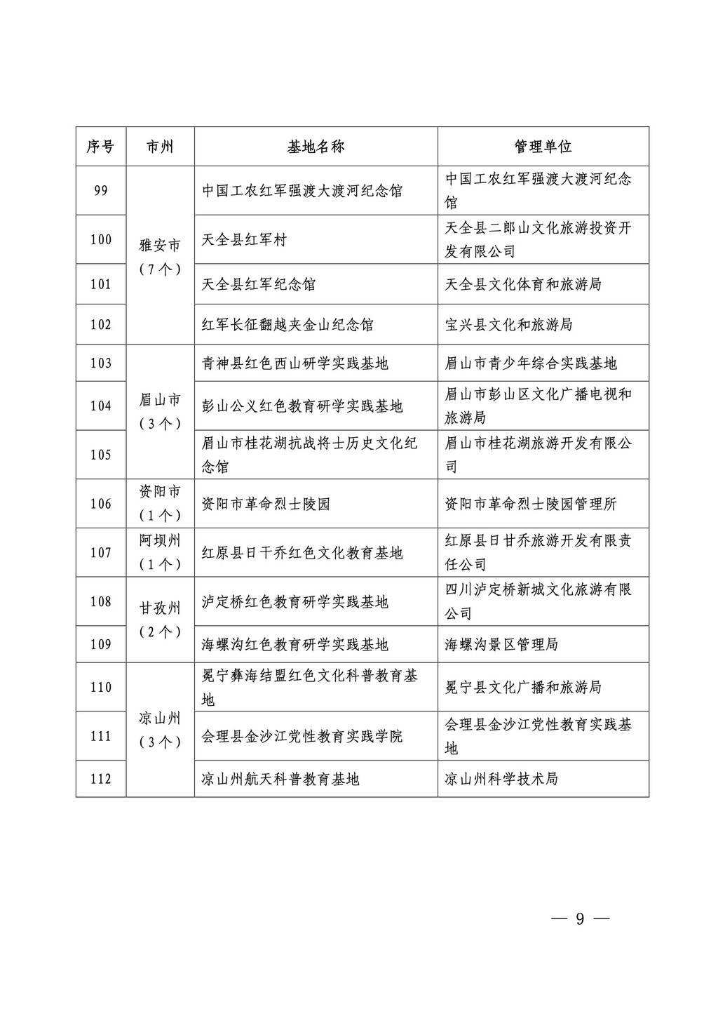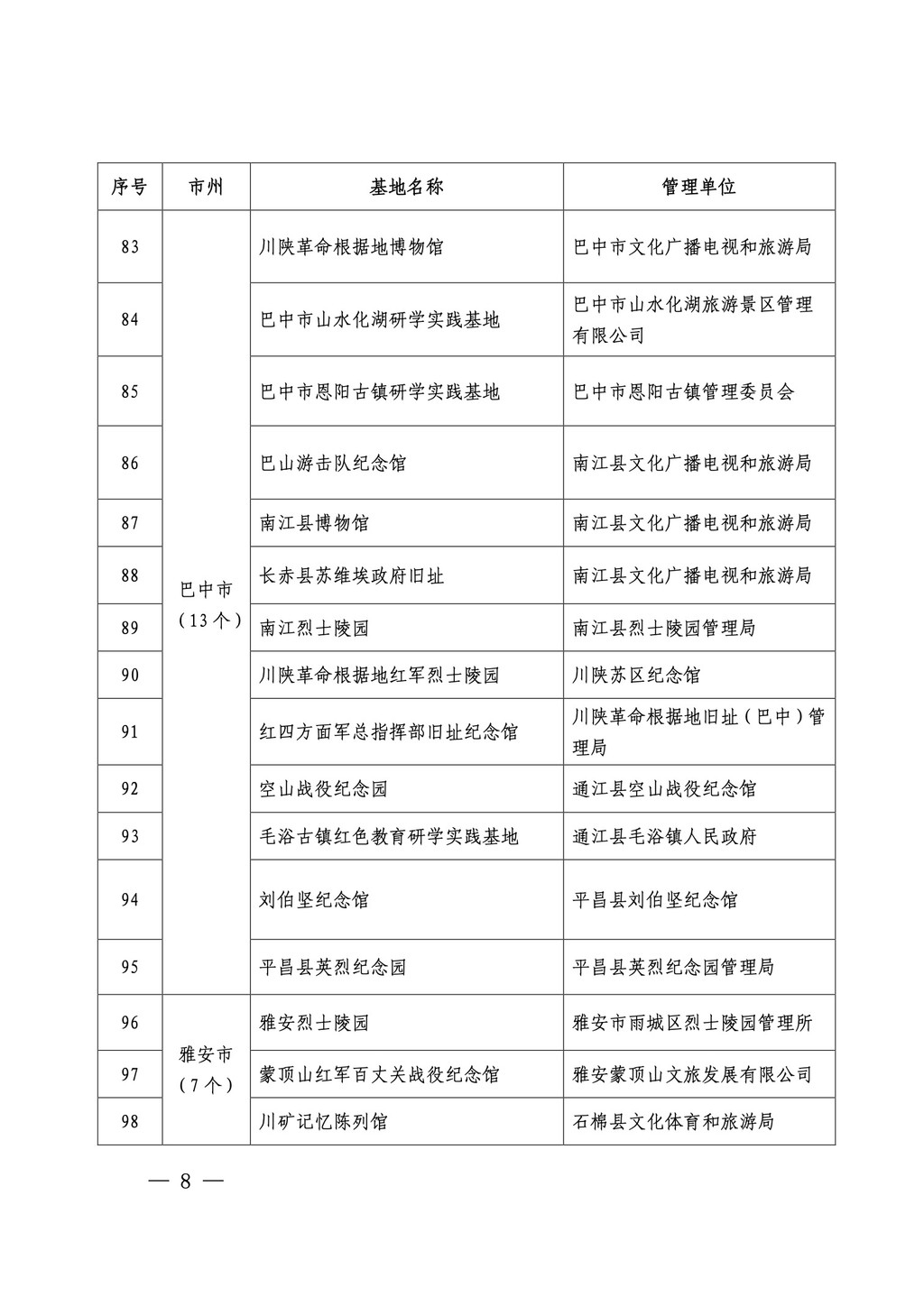 附:四川省首批中小学红色教育研学实践基地名单(112个)